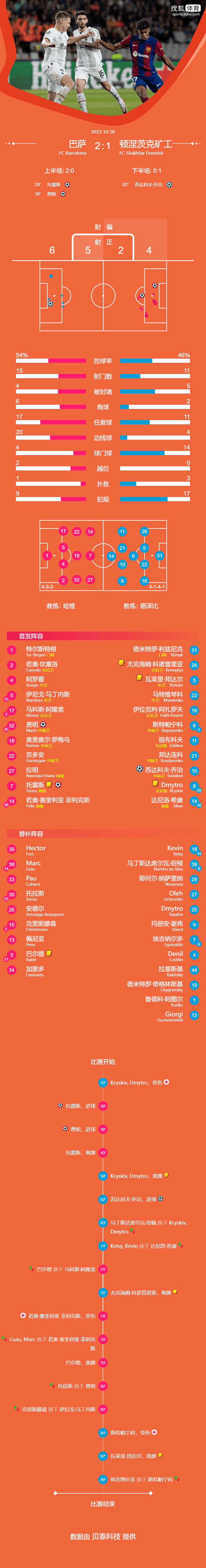 矿工(4231):31-德米特罗/26-科诺普良卡、5-邦达尔、22-马特维延科、16-阿扎罗夫/21-邦达连科、8-克雷斯基(第62分钟,39-纽尔顿)/10-苏达科夫、6-斯特帕年科(第90分钟,7-埃吉纳尔多)、11-祖布科夫/14-丹尼洛(第71分钟,18-凯尔西)